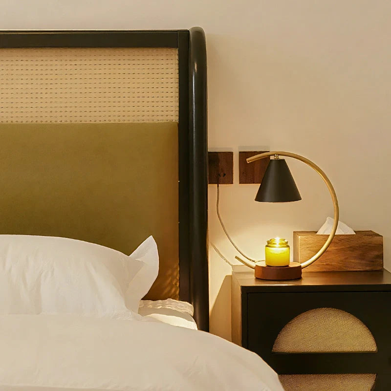 Bring celestial serenity into your space with the Moonveil™ Wax Warmer Lamp. Inspired by the gentle glow of the moon. this warmer softly releases your favorite scents. filling the air with soothing fragrance. Featuring a dimmable light. natural wood base. and gracefully arched iron frame. it serves as both a calming light source and a sculptural decor piece. Timeless. tranquil. and beautifully crafted — it's a quiet invitation to unwind.