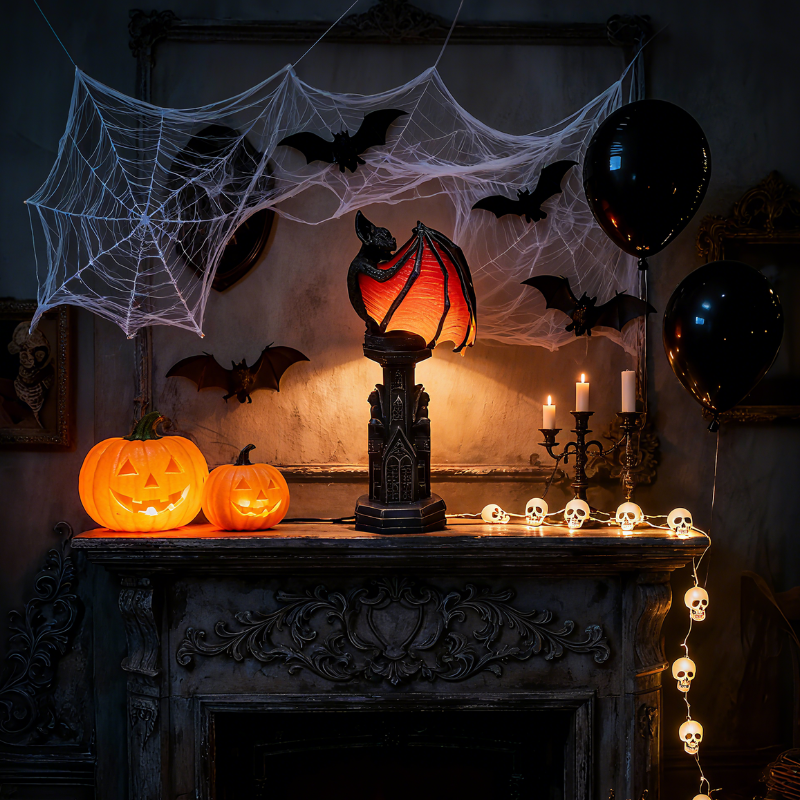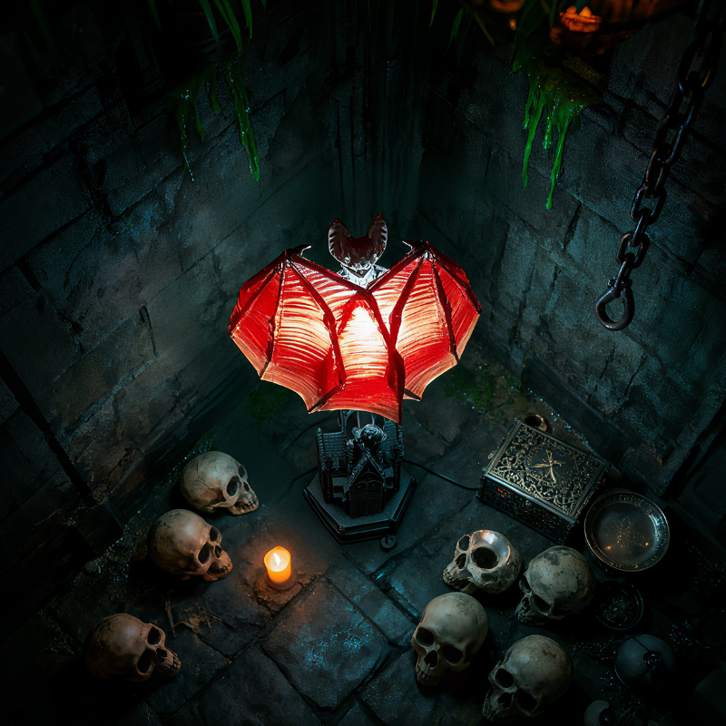 Summon a mesmerizing gothic presence into your space with the Vampyra™ Bat Lamp. This haunting lamp fuses eerie illumination with intricate artistry. featuring expansive crimson wings that radiate an ominous warmth. Perched above a sculpted haunted house base. every detail evokes dark legends and moonlit nights. Perfect as a horror-inspired accent. witch's lair essential. or Halloween centerpiece. it casts a sinisterly enchanting glow that transforms any room into a realm of mystery.