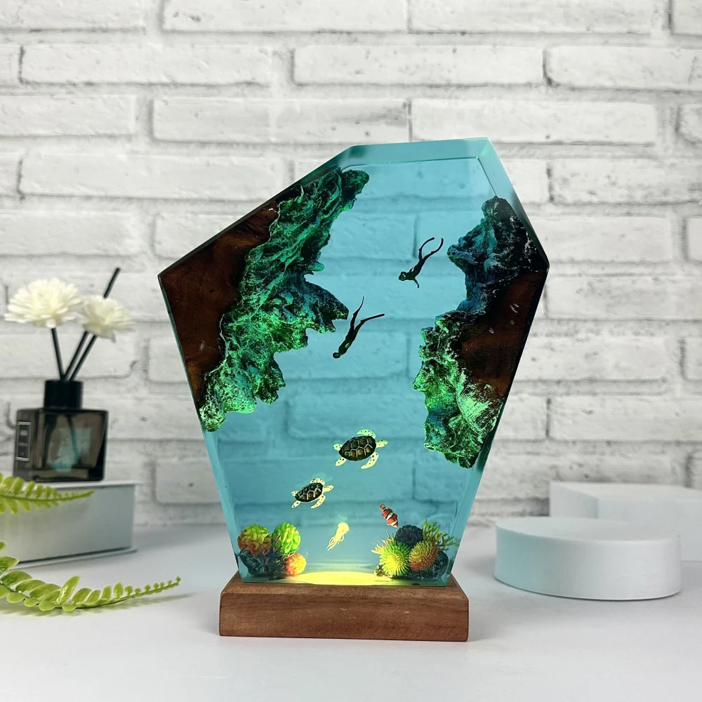 Introducing the WhisperSea™ Night Light. a captivating. nature-inspired piece that brings warmth and tranquility to your space. Expertly crafted from premium resin. its charming design adds a touch of whimsy while offering a spectrum of lighting colors to set the perfect ambiance for relaxation. Built for durability and elegance. this night light seamlessly blends functionality and decorative appeal. creating a serene and peaceful atmosphere in any room.✔️ UNIQUE DESIGN – The enchanting ocean elements inside the resin create a stunning 3D effect. transporting you to the sea and infusing any space with a sense of wonder and tranquility.